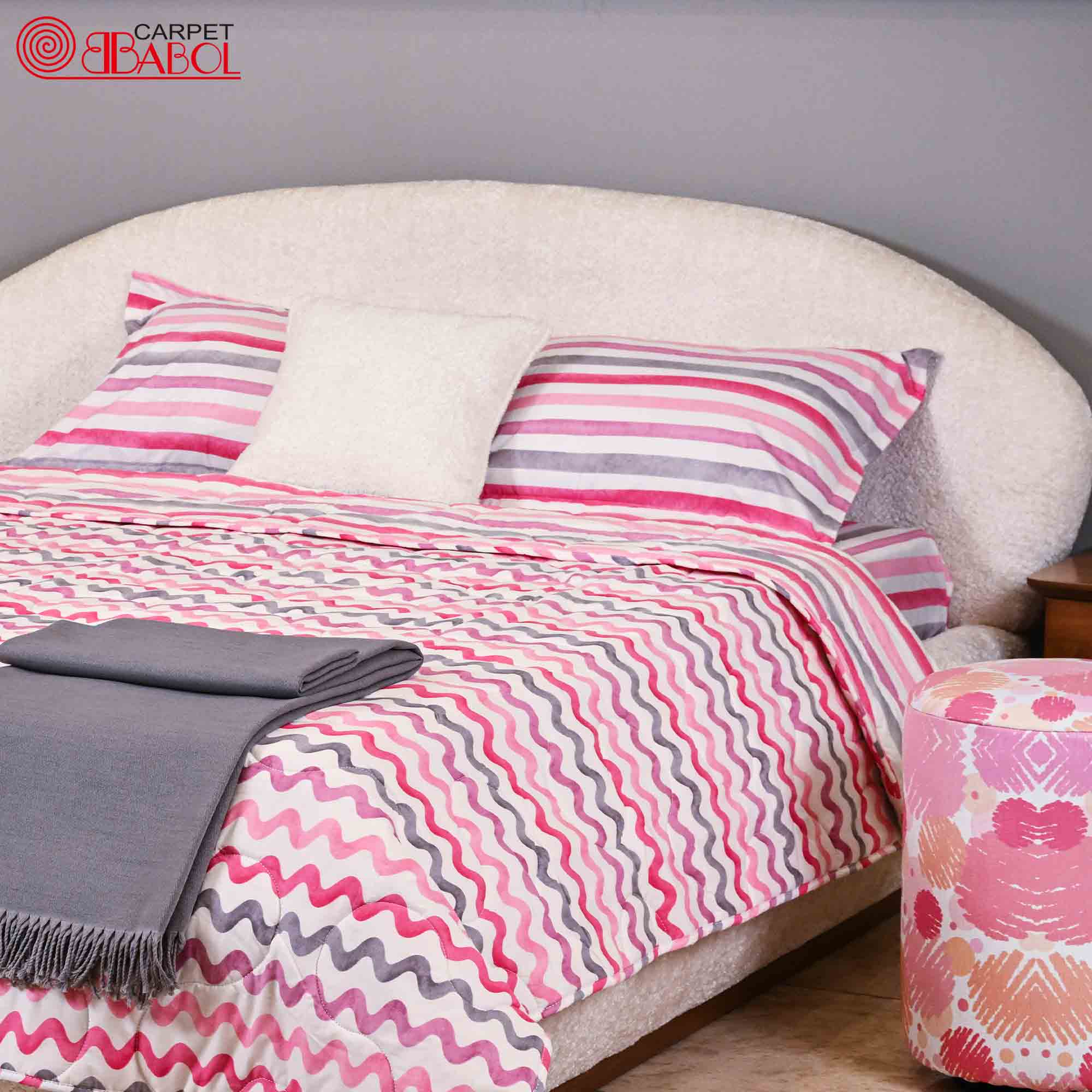 سرویس لحاف دو نفره پلی استر تیسا طرح پیچک صورتی